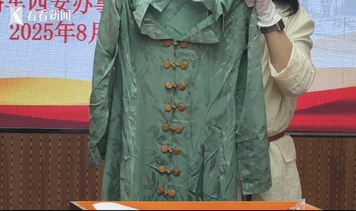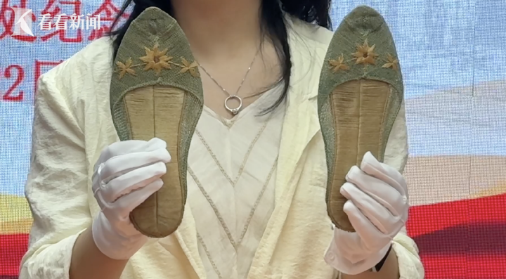 捐赠仪式现场,陕西斯诺研究中心副主任高敏娜向八路军西安办事处纪念馆捐赠“海伦旅居北平时穿过的家居服”以及“海伦在菲律宾为中国工合募资时,穿过的拖鞋”等两件文物。